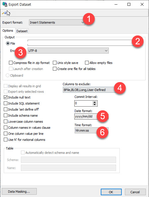4) Columns to exclude 부분에 보면 clob을 exclude하지 않도록 변경(CLOB 체크 해제)