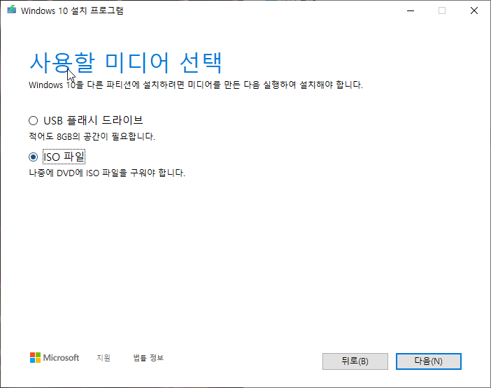 윈도우 10 다운로드 및 ISO 파일 만들기