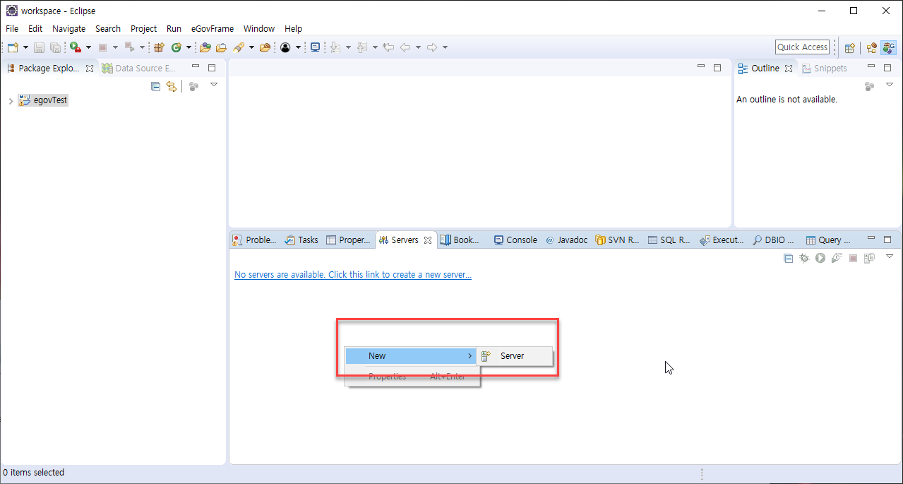 Servers 탭에서 마우스 오른쪽 버튼 클릭하여 Server 클릭