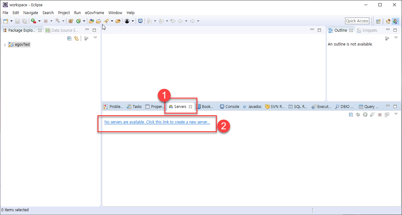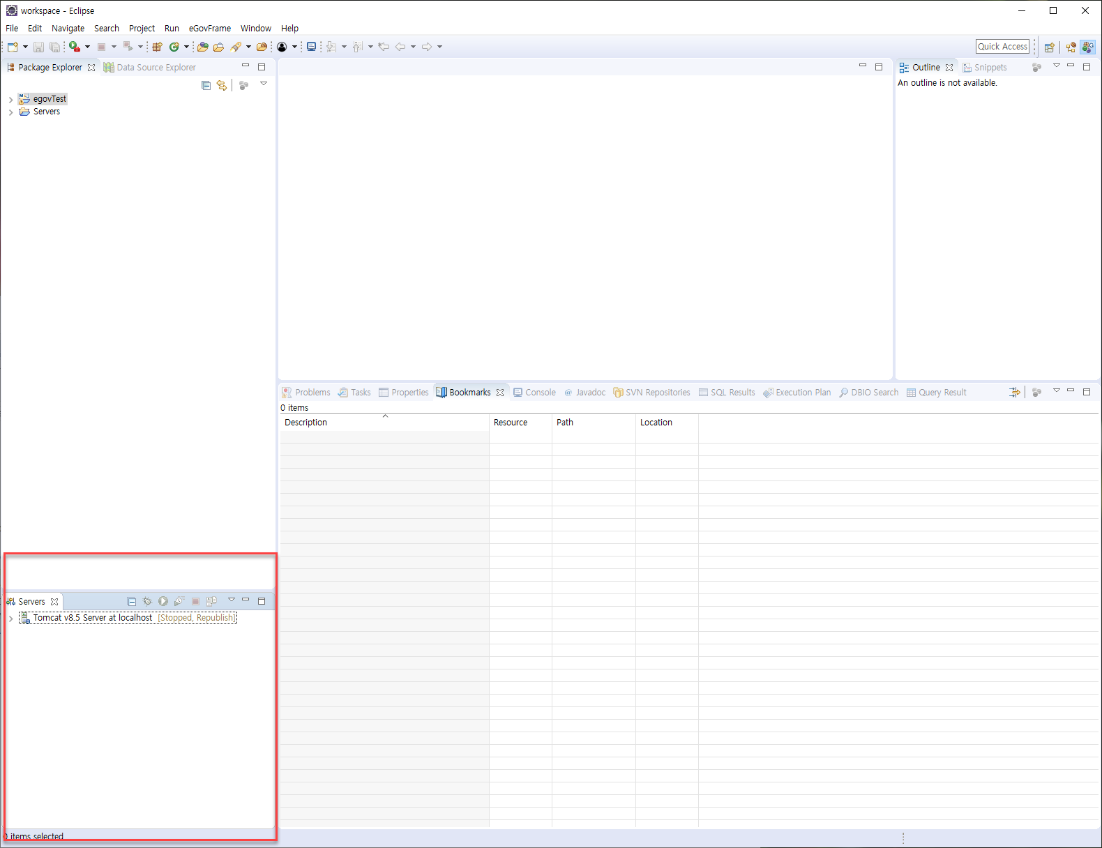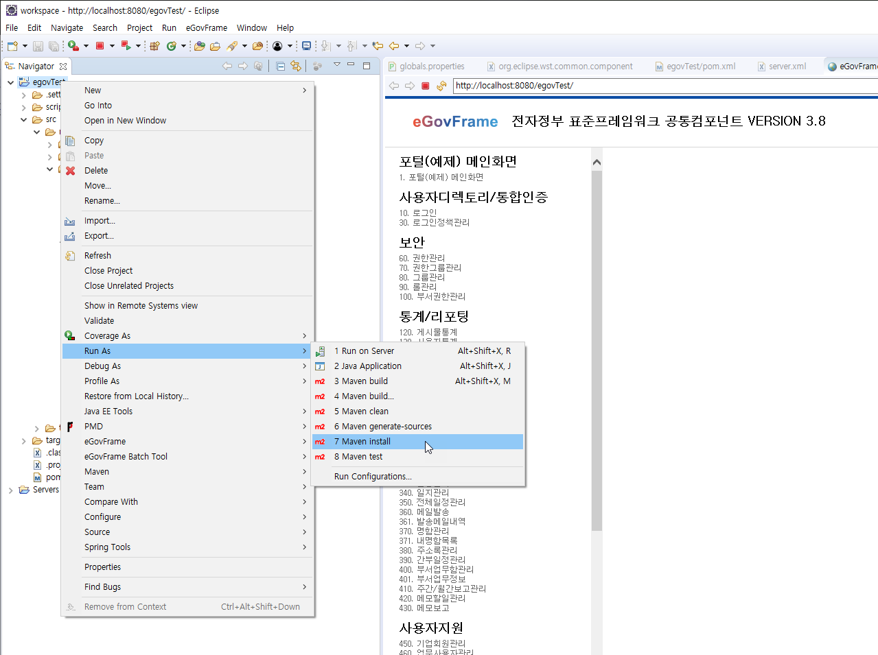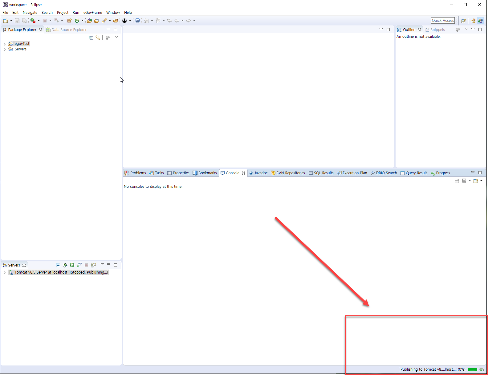 수정하고 나면 Validating egovTest 라고 하면서 다소 오래 걸린다.
