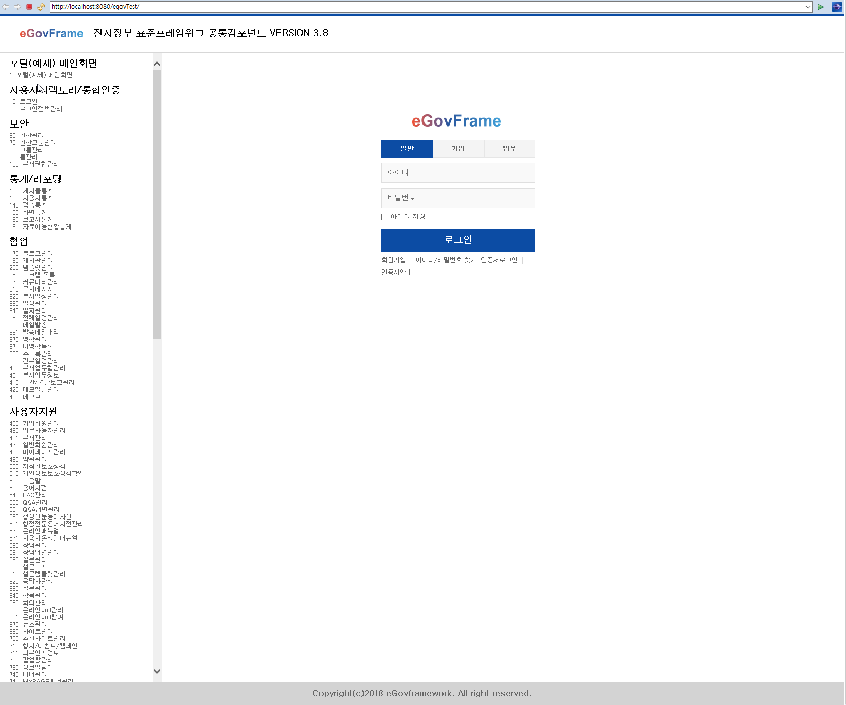http://localhost:8080/egovTest/ 라고 입력하면 아래와 같이 창이 뜬다
