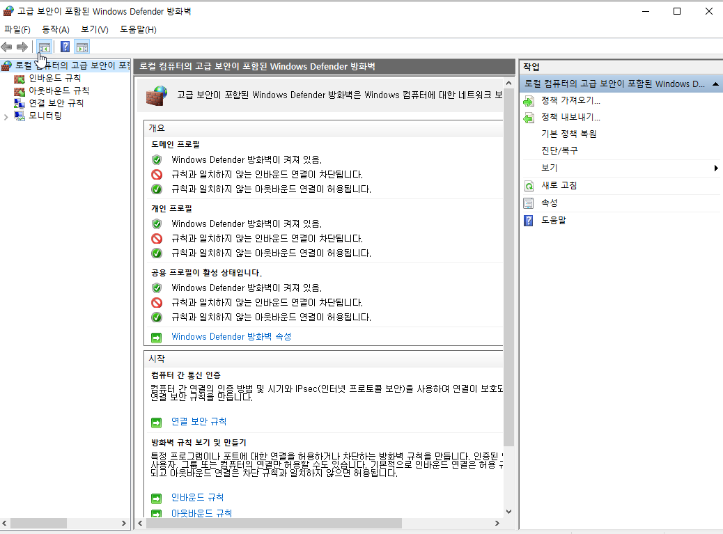 방화벽 설정 > 인바운드 규칙, 아웃바운드 규칙 추가