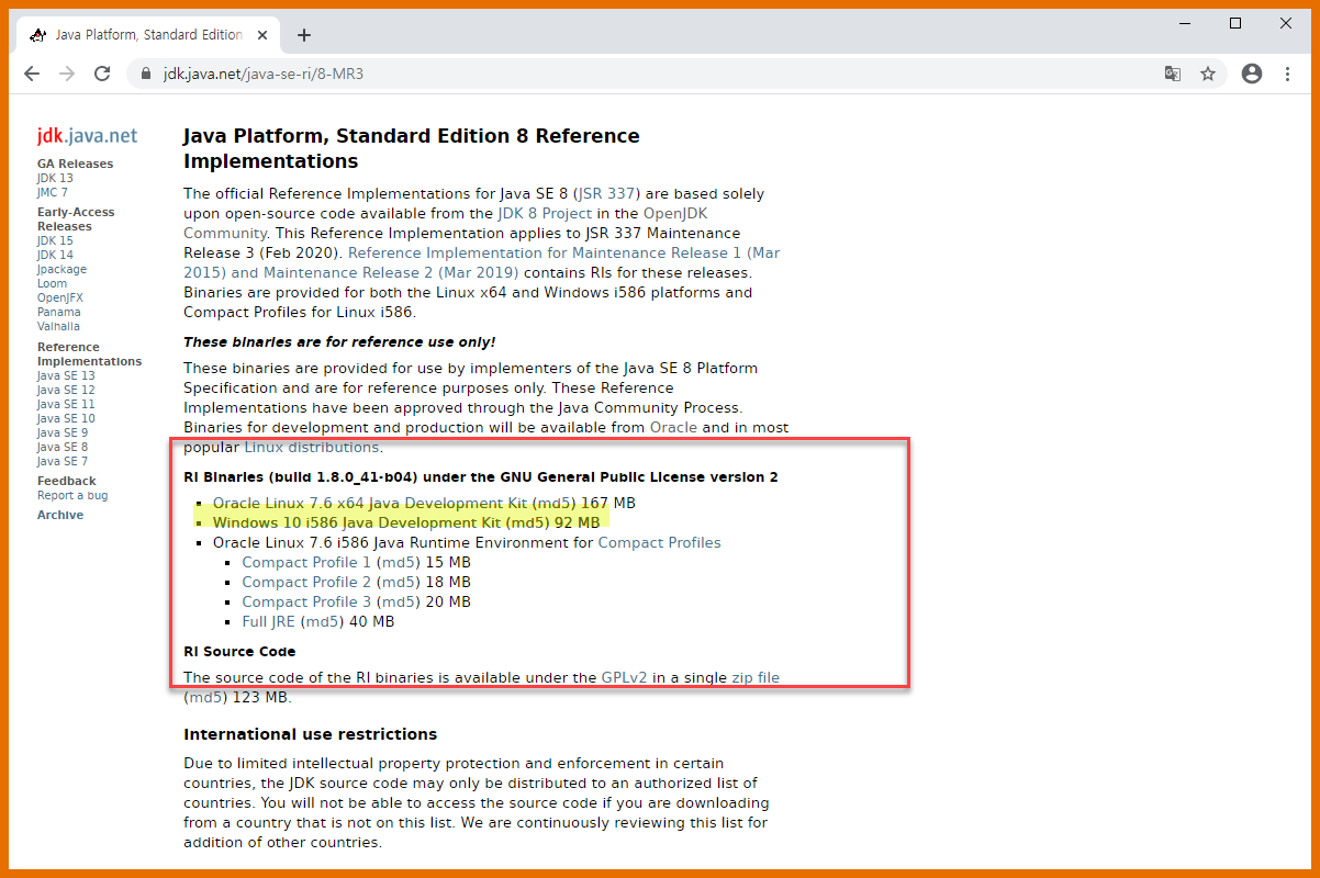 3. RI Binaries (build 1.8.0_41-b04) under the GNU General Public License version 2 라고 하는 부분에서