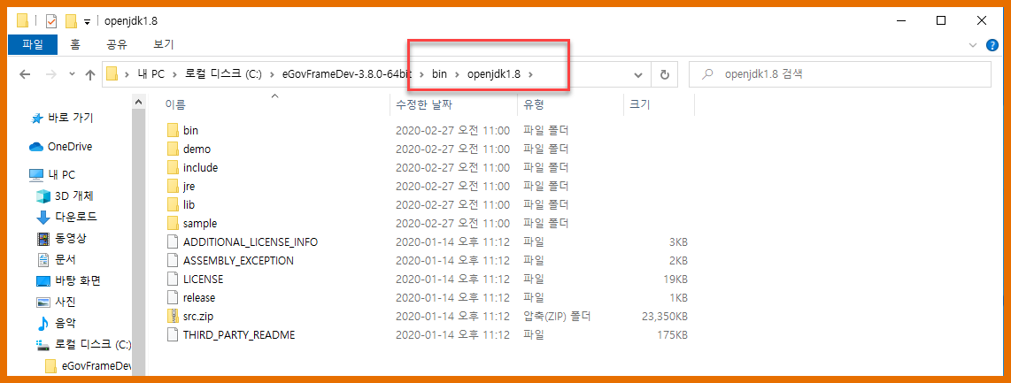 - 경로는 일단 이렇게 해두었다. C:\eGovFrameDev-3.8.0-64bit\bin\openjdk1.8