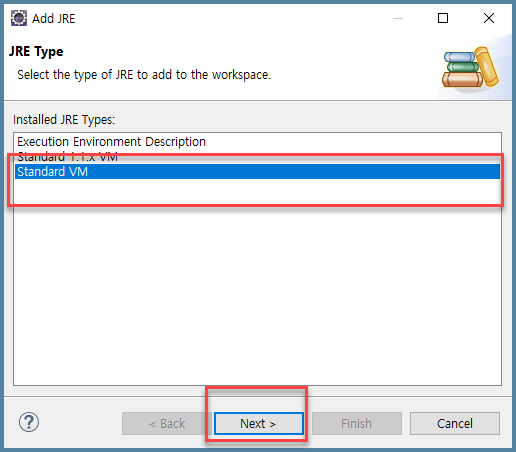 - 그럼 아래와 같이 화면이 바뀌었다. 아래와 같은 모양이 아니라면 jre 폴더를 다시 선택해준다.