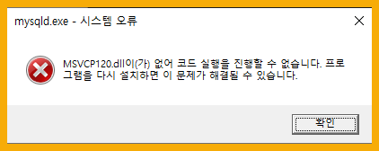 MSVCP120.dll이(가) 없어 코드 실행을 진행할 수 없습니다. 프로그램을 다시 설치하면 이 문제가 해결될 수 있습니다.