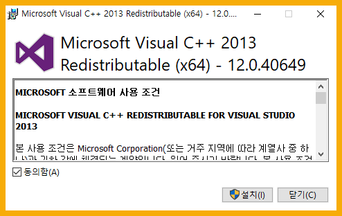 해당프로그램은 MICROSOFT VISUAL C++ REDISTRIBUTABLE FOR VISUAL STUDIO 2013 인 것 같다.