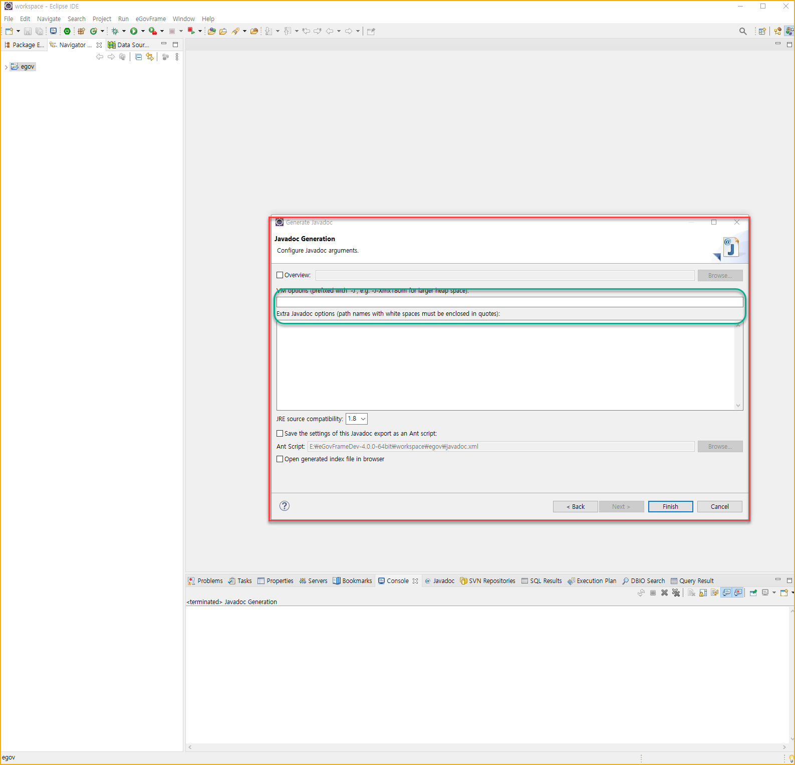 이클립스 상에서 Javadoc을 실행해서 문서를 만들고자 한다.