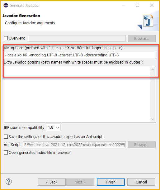 -locale ko_KR -encoding UTF-8 -charset UTF-8 -docencoding UTF-8