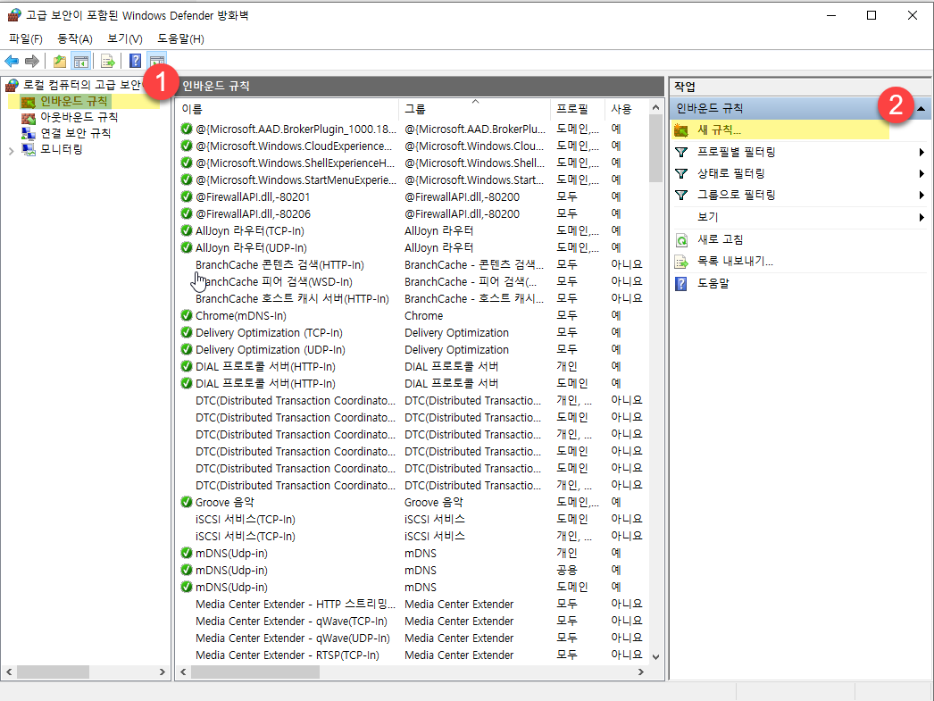 방화벽 설정 > 인바운드 규칙, 아웃바운드 규칙 추가