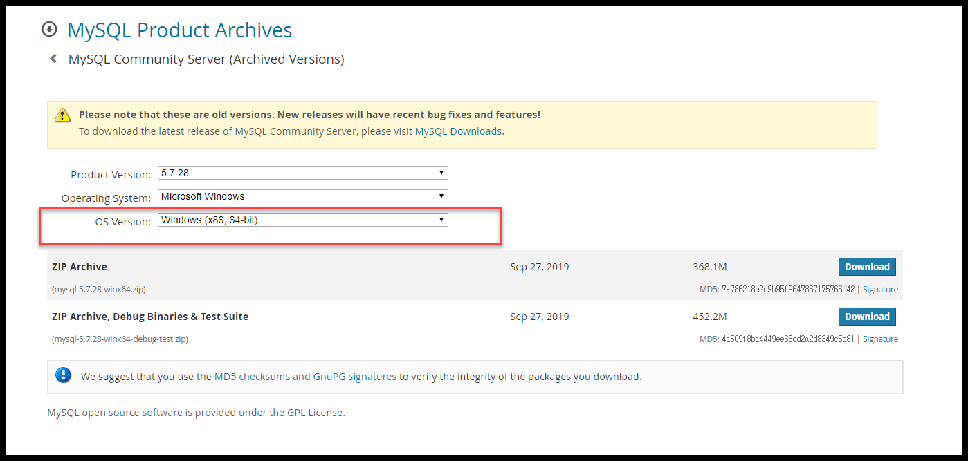 Please note that these are old versions. New releases will have recent bug fixes and features! To download the latest release of MySQL Installer, please visit MySQL Downloads. MySQL open source software is provided under the GPL License.