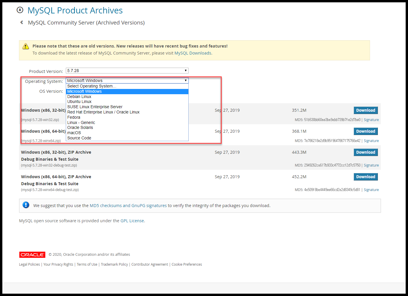 MySQL 5.7 다운로드