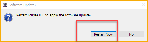 - 잠시 기다리면 아래와 같은 창이 뜬다. Restart Now 를 클릭해준다.