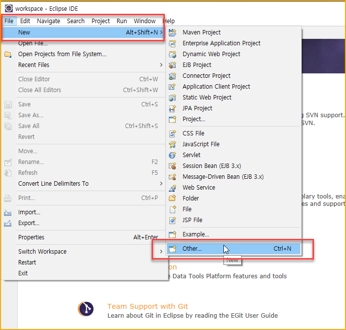 - File > New > Other...
