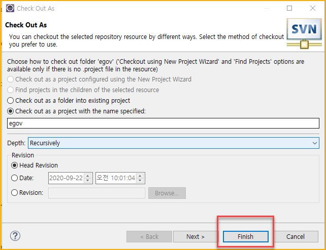 8. 이제 다시 프로젝트를 SVN으로부터 불러온다.