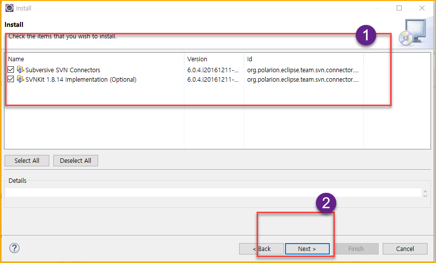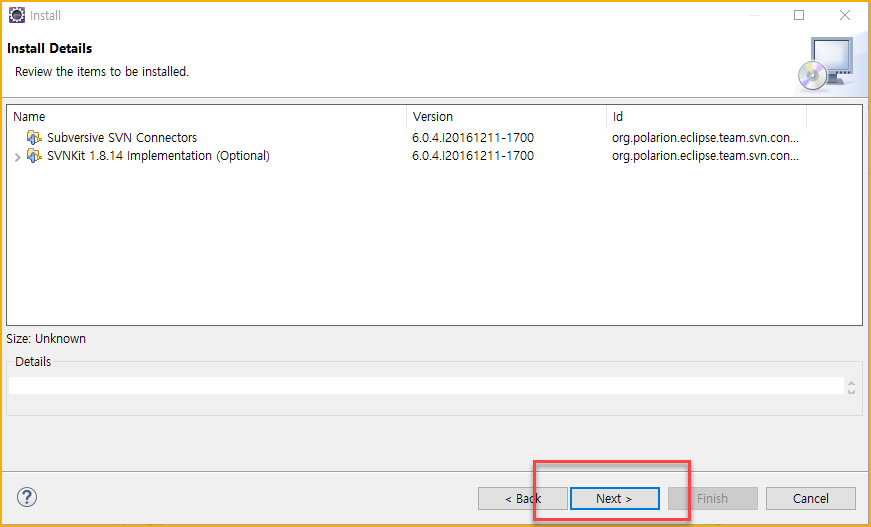 - SVN Kit 1.8.14를 선택하여 설치를 진행한다.