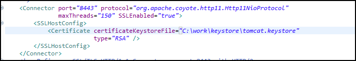 keytool -genkey -alias tomcat -keypass changeit -storepass changeit -keyalg RSA -keystore C:\work\keystore\tomcat.keystore