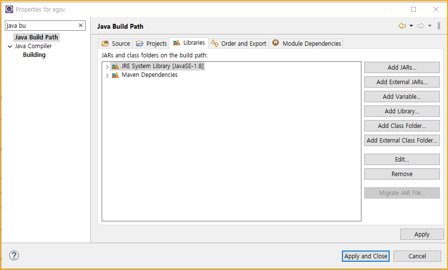 Add Library 해서 jre 라이브러리를 다시 추가해준다.