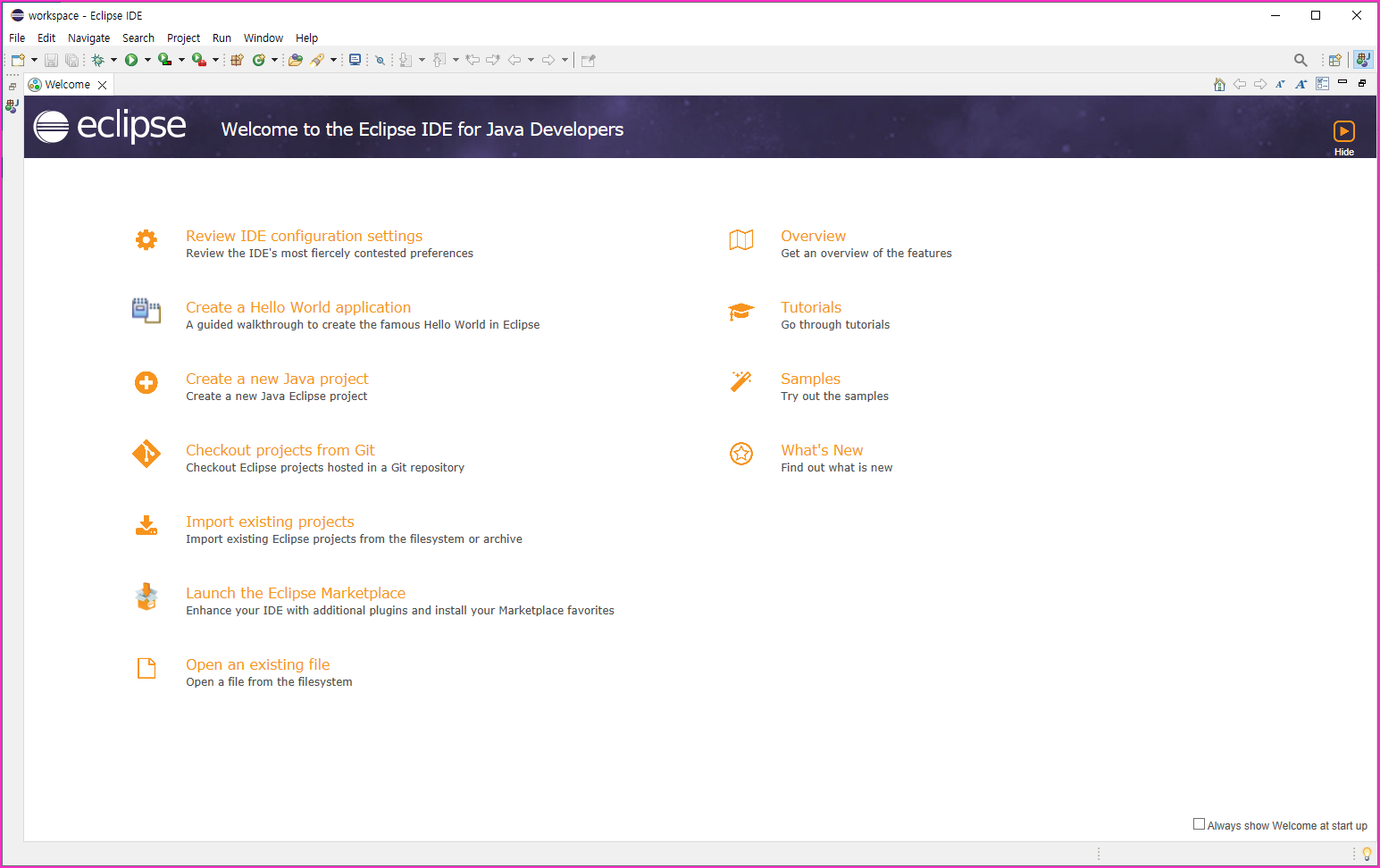 - 아래와 같이 나오면 일단 이클립스가 돌아간다고 볼 수 있을 것이다.